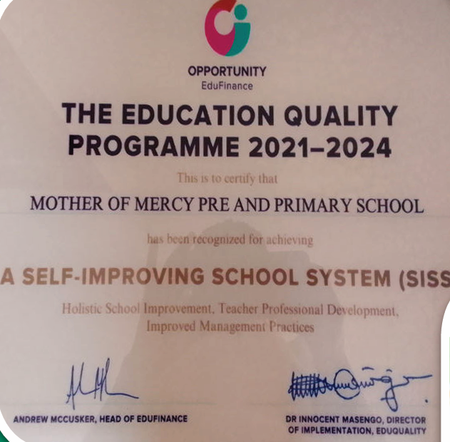 Welcome to MOM Nursery and Primary school, a learning community that equips children to become creative, caring and committed learners in a changing world. We welcome families from across Tanzania and beyond to be part of our school, where our mission : “To utilize and enhance the total development perspectives of each pupil: Spiritually, intellectually socially and physically” is at the heart of everything we do. T hrough deep engagement with the rich and varied heritage that we have, blended with the very best vision, we enable our children to find creative solutions to the challenges that tomorrow will bring. Whether we are using our skills to solve problems, or to tell stories, we are constantly striving to deepen our understanding of who we are and what we can do to make our world a better place. Our shared goal at MOM School is to help each pupil become the best as they can. As a school with big goals, we also aim to make our school, our community, our society and our world a better place for all. Our curricu lum will support the development of essential skills in Science, Language, humanities, Maths, Technology, Sport and across the arts, which enable chil dren to become successful learners, as well as an asset to the community. At MOM English Medium Primary school, we nurture each child, helping them develop academically and spir itually, and enabling them to care for others.We look forward to welcoming you to our loving school